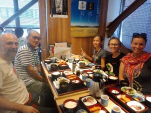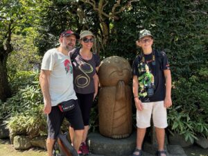 鎌倉に来るなら大仏を、報国寺では良く手入れされた日本庭園と竹林を、浄妙寺では抹茶体験を、そして最後は鶴岡八幡宮で神道をお話ししようと計画していた。しかし、当日、WhatsApp に家族の写真が送られてきて幼い子がいることが分かり、子供が退屈しそうな浄妙寺をやめ、いろいろな物が置いてある長谷寺に替えることにした。「鎌倉とは」から始まり、大仏にまつわる歴史、仏教と日本人、日本庭園、墓地の文化、茶道、神道と日本人など盛りだくさんな紹介ができた。家族はこの後、長野、松本、金沢、白川郷などを経て京都へ行き、最後広島まで行くと言っていたので、これから日本各地へ行き、いろいろ見る中で参考になれば幸いである。一番下のお嬢さんは日本のアニメが大好きで、前日秋葉原でご満悦だった模様。また、神戸牛を食べたいと言っていたので、ぜひどこかで味わってもらいたい。