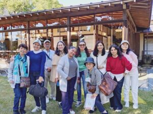 当日は、爽やかな散策日和で、笑顔のゲスト全員が大磯駅に時間通りに到着。大磯駅前の澤田美喜記念館から散策を開始し、明治・大正・昭和時代に財界・政治で活躍した偉人たちの邸宅を3時間で巡った。各訪問先では、それぞれの出身国の文化や歴史から発想した活発な会話を楽しみ、日本家屋の素晴らしさを堪能した。旧吉田茂邸で昼食と休憩。短い自由時間だったが庭園の美しさに笑顔が溢れていた。海岸からの風を感じながら国道1号線を歩き、江戸時代の大磯宿や当時の旅について紹介した。ゲストたちは、短時間ながら大磯町を満喫していた様子だった。最後の城山公園の見晴台では、富士山と大磯の自然をゆっくり楽しみ、サンモール校の初めての大磯城山公園ツアーは、全員満足の笑顔で終了となった。