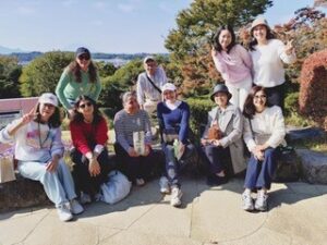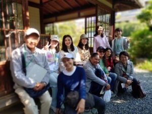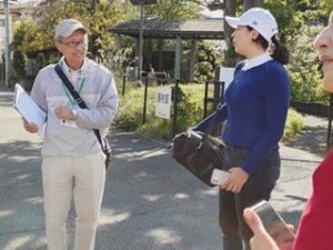 当日は、爽やかな散策日和で、笑顔のゲスト全員が大磯駅に時間通りに到着。大磯駅前の澤田美喜記念館から散策を開始し、明治・大正・昭和時代に財界・政治で活躍した偉人たちの邸宅を3時間で巡った。各訪問先では、それぞれの出身国の文化や歴史から発想した活発な会話を楽しみ、日本家屋の素晴らしさを堪能した。旧吉田茂邸で昼食と休憩。短い自由時間だったが庭園の美しさに笑顔が溢れていた。海岸からの風を感じながら国道1号線を歩き、江戸時代の大磯宿や当時の旅について紹介した。ゲストたちは、短時間ながら大磯町を満喫していた様子だった。最後の城山公園の見晴台では、富士山と大磯の自然をゆっくり楽しみ、サンモール校の初めての大磯城山公園ツアーは、全員満足の笑顔で終了となった。
