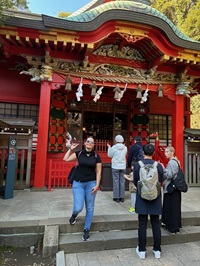 龍恋の鐘を案内したのちランチとなった。江の島名物しらすの話をしたのでAさんはしらす海鮮丼をオーダーした。道中でAさんは龍の像は面白いと何度も写真を撮り、道の途中にいた大きな蜘蛛を見つけてはすごいと連発していた。写真を撮る際には急いで髪を下ろしサングラスを掛けポーズをとる面白いイタリア女性だった。
